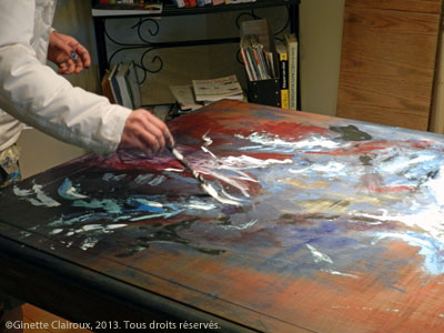 To show you what I mean, I chose a picture I took from part of Marie’s work. Then, I made three other versions of the same picture by rotating the image to the right. By doing so, I got four views of the same painting.