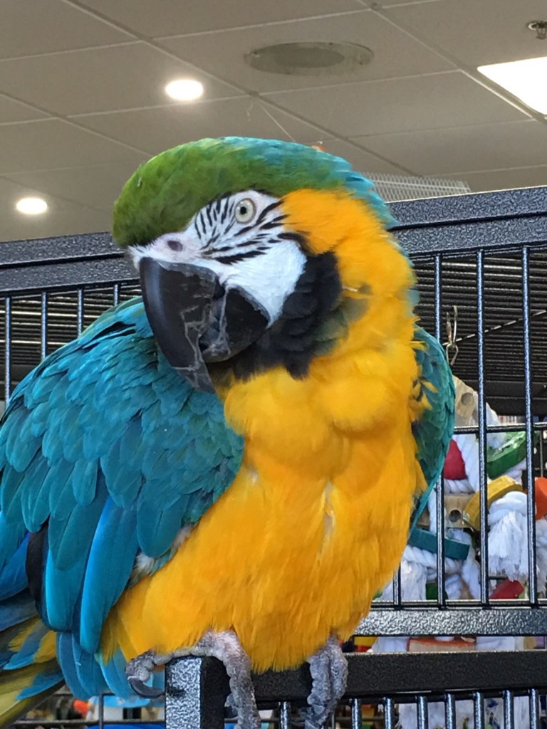Pendant que je payais, Sophie, le perroquet, était hors de sa cage, derrière moi.