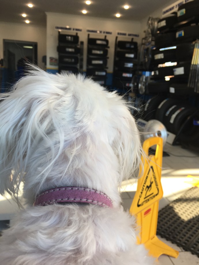 Charlotte fait poser ses pneus d’été.