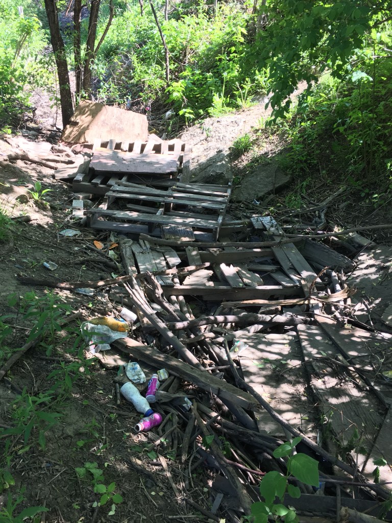 Il y a quelques années, mon voisin et moi avons fait le ménage du ravin. Nous avons mis les déchets sur la butte au haut du ravin. Lorsque la Ville est passée tondre le gazon (étonnant la Ville dit ne pas être responsable, mais tond le gazon !?!) l’employé a poussé tous les déchets dans le ravin.