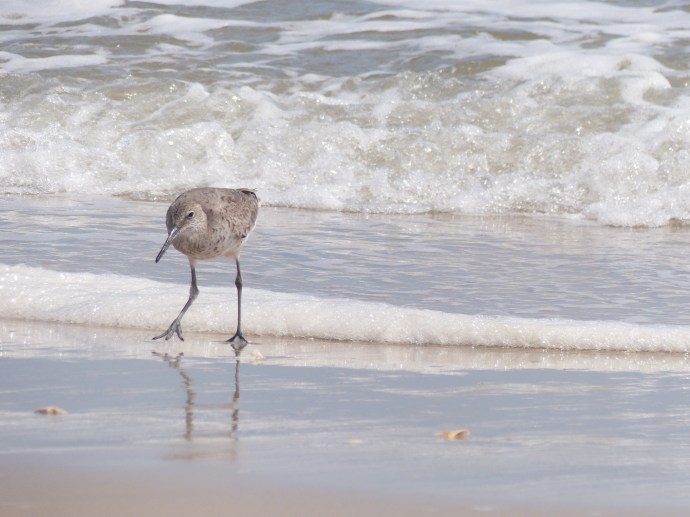 Un bécasseau exécutant quelques pas de danse sur les plages de Topsail Island, Caroline du Nord, États-Unis d’Amérique.