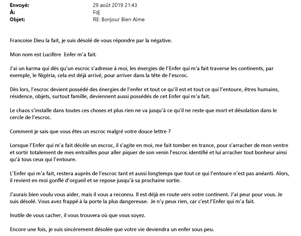 Après avoir lui le courriel et la pièce jointe, j’ai eu le goût de m’amuser un peu en répondant au courriel de Françoise Dieu la fait.