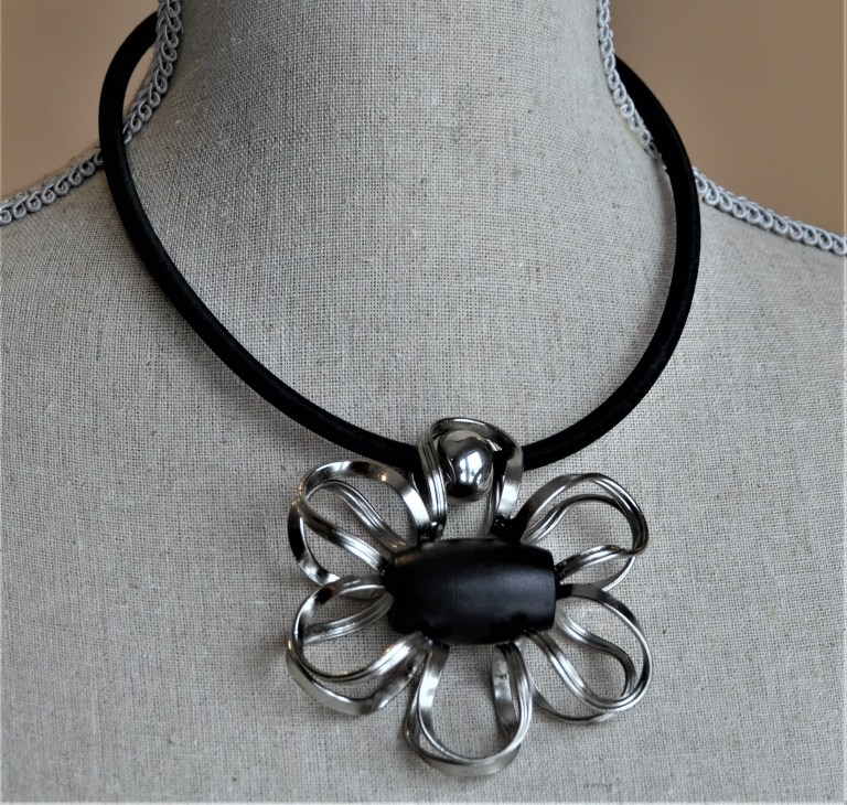 J’ai ajouté une perle de métal au centre du collier dans un alvéole de l’anneau.