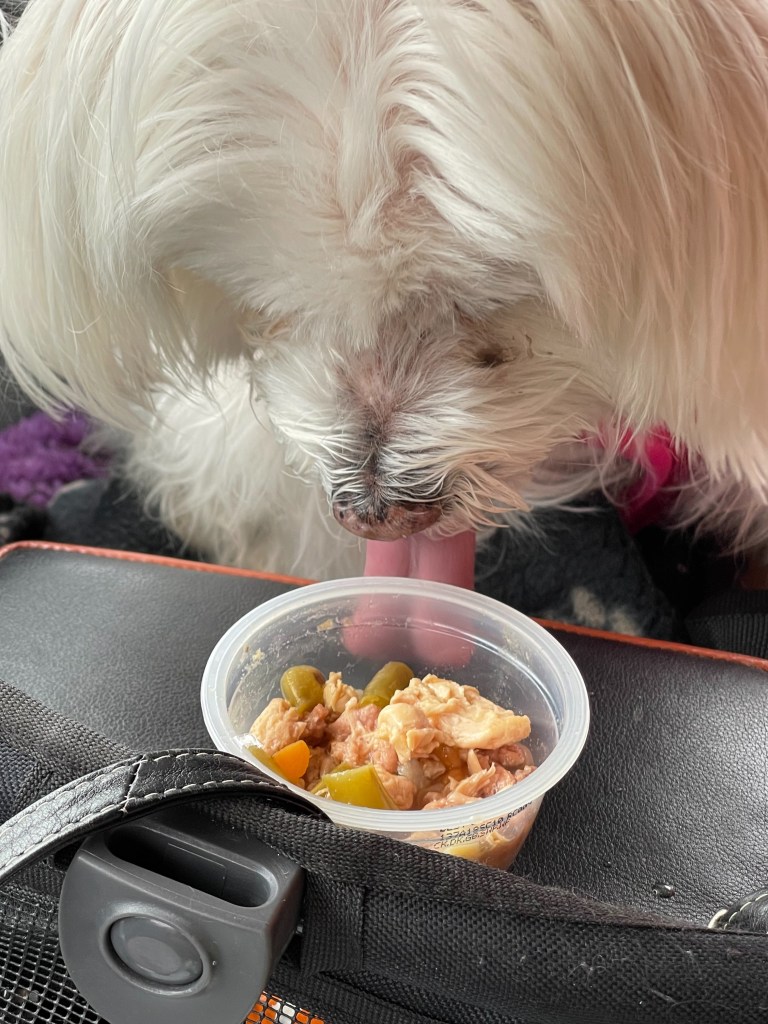 Charlotte doit manger, faire pipi et se dégourdir les pattes.