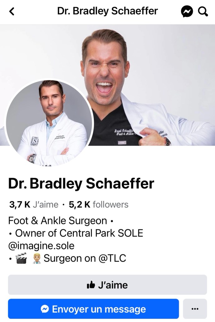 Il utilise les photos du deuxième (le vrai compte) du Dr Bradley Schaeffer, chirurgien du pied de New York, USA.